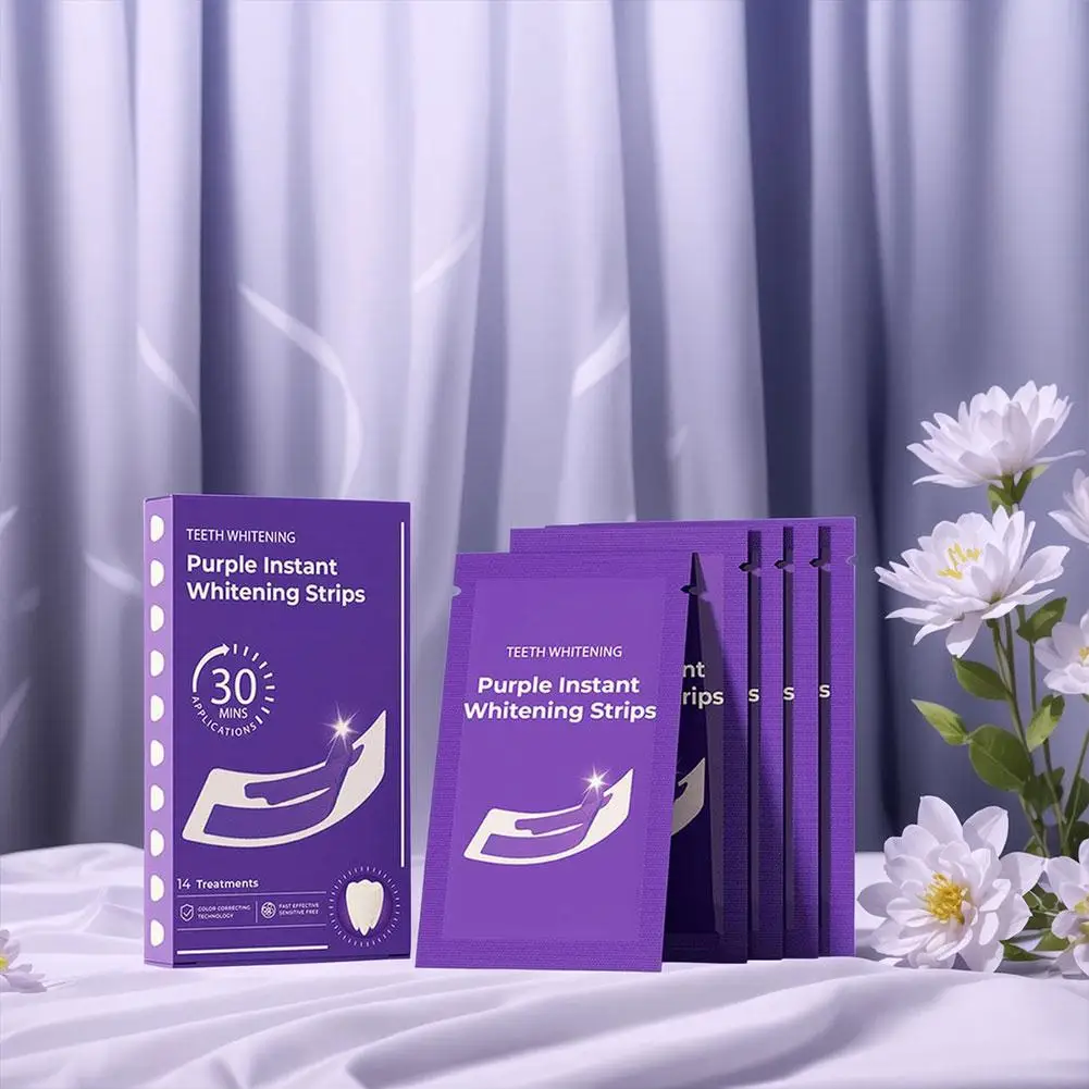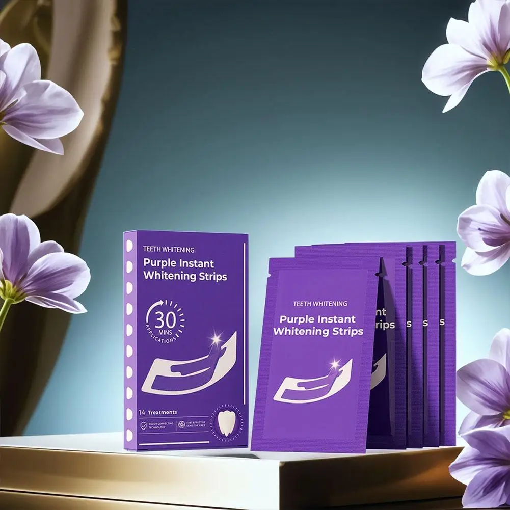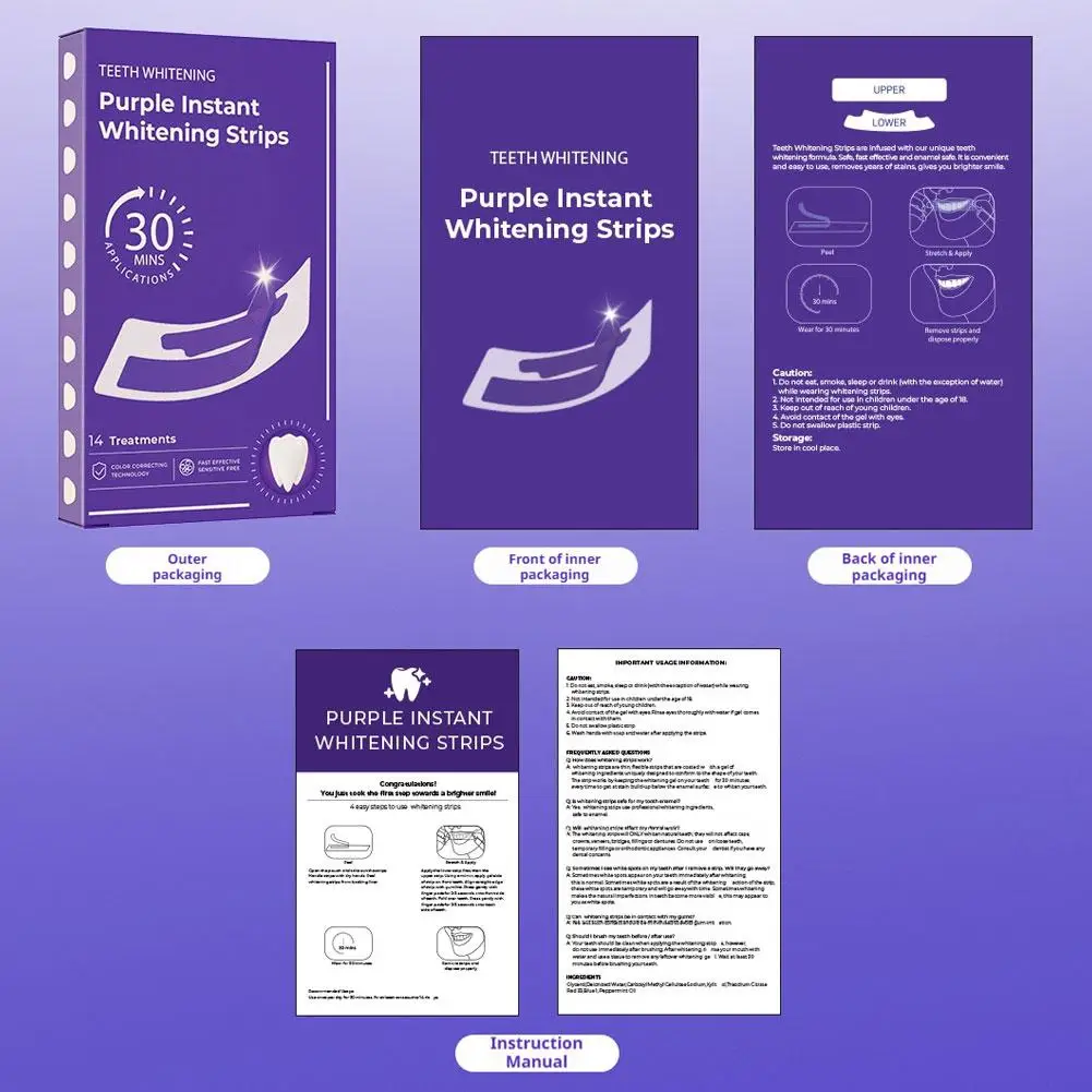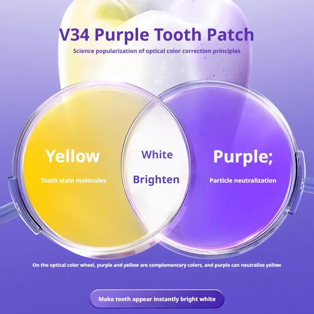 Package includes:V34 Purple Teeth Whitening Strips*1pcs